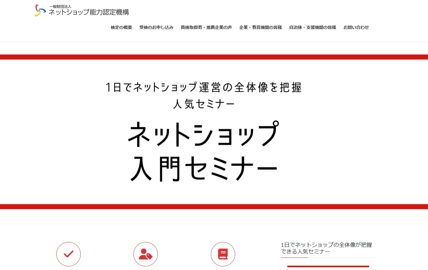 公式サイトはこちら ネットショップ検定について ◆ネットショップ実務士について ネットショップ実務士はEコマース業界を代表する大手企業の“こんな人材が欲しい!” から生まれた資格です。 ネットショップ検定の合格者はEコマース業界の実務知識とノウハウを習得した業界の スペシャリスト「ネットショップ実務士」として認定されます。 商品名 ネットショップ検定 カテゴリ 未分類