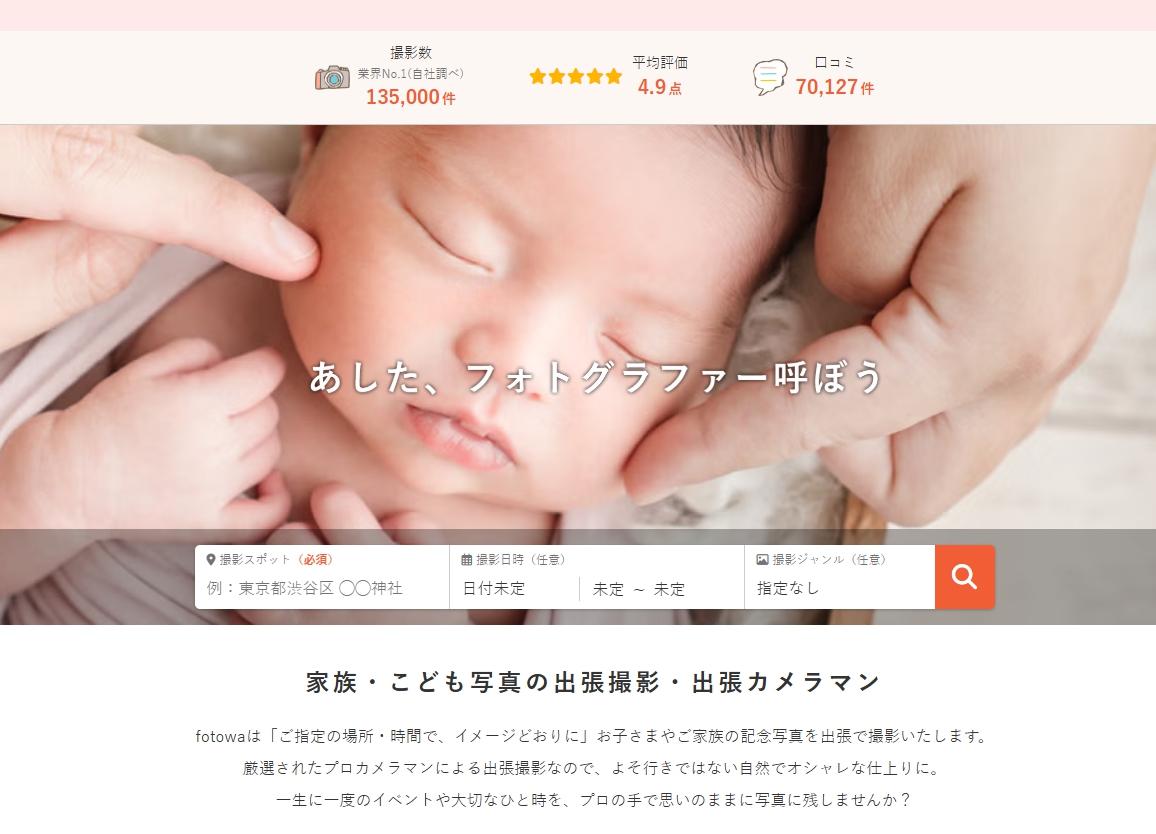 公式サイトはこちら fotowa (フォトワ)について 思い出をもっと特別に。プロの出張撮影で自然な家族写真を 七五三、お宮参り、マタニティフォトなど、大切な瞬間をプロのカメラマンが美しく残します。 ロケーションやご自宅での自然な撮影だから、お子さまもリラックス。 全国対応&明瞭価格で安心!思い出に残る一枚を手軽に撮影しませんか? 商品名 fotowa (フォトワ) カテゴリ 未分類